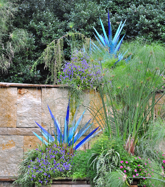 Last night we went to the Chihuly exhibit at the Dallas Botanical Garden. My photos do not do the artist's magnificently lit sculptures justice. There was also a clever village made entirely of pumpkins and pumpkins and gourds throughout the gardens. I felt like I had been transported to another world.